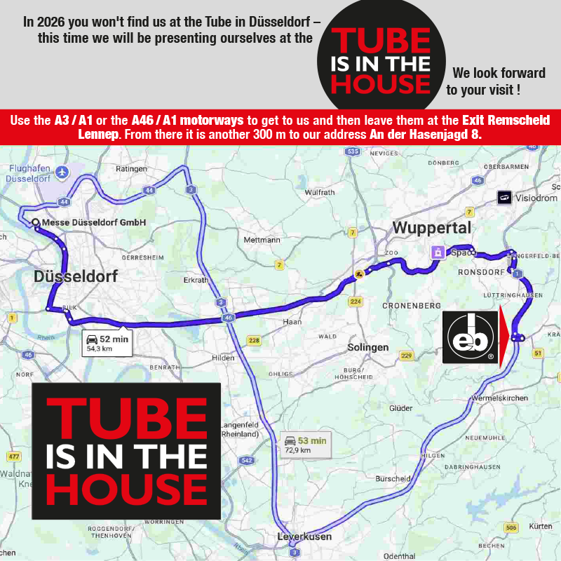 In the past few weeks, we have already informed you that our trade fair activities this year will be bundled into a “Tube is in the House” event. This event will take place at our company, which has the advantage that we can take even better care of you.